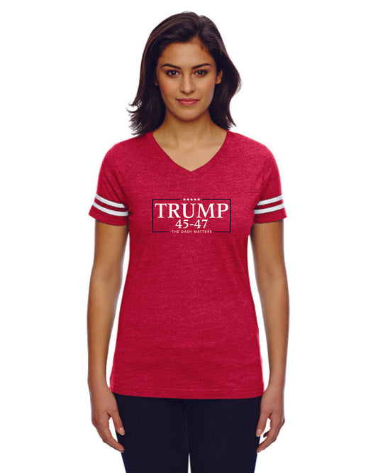 TRUMP - 45-47 - The Dash Matters Collection - Women's Football V-Neck Fine Jersey Tee