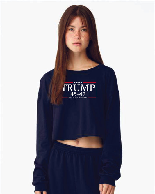 TRUMP - 45-47 - The Dash Matters Collection - Women's Crop Long Sleeve Tee with raw hem