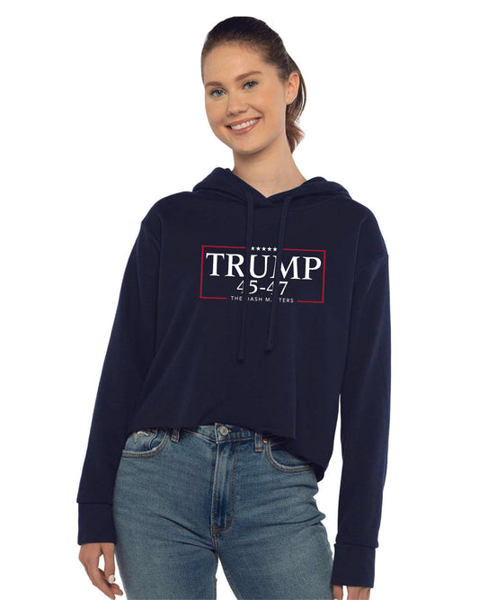 TRUMP - 45-47 - The Dash Matters Collection - Women's Sueded Raw Edge Crop Hoodie